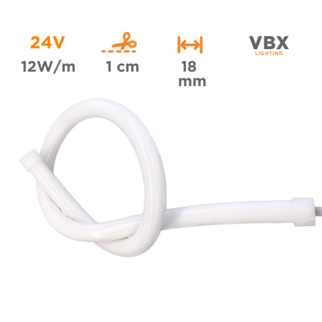 Il Neon LED Flex 360° di VBX è il tubo a LED che emette luce in tutte le direzioni come se fosse un vero e proprio tubo fluorescente. Il rivestimento esterno è in silicone anti UV: estremamente flessibile e adatto a una vasta gamma di applicazioni. Grazie ai suoi 240 led al metro la luminosità è perfettamente uniforme. Si alimenta a 24 volt e possono essere illuminati fino a 10 metri consecutivi con un solo collegamento elettrico. è disponibile in tre diversi diametri: 16,18 e 22 mm. è possibile scegliere tra diverse temperature di bianco, colori o la versione RGB.